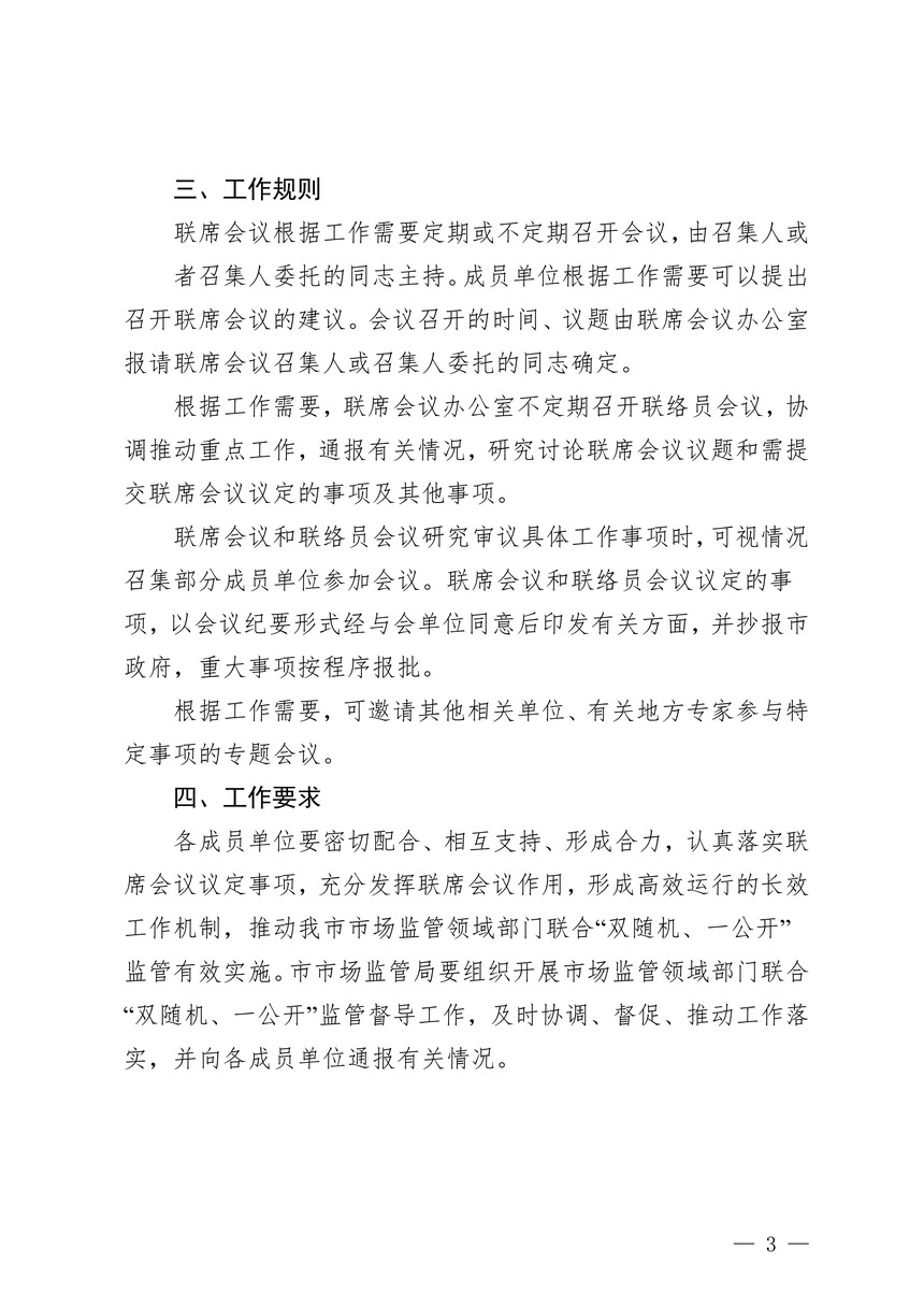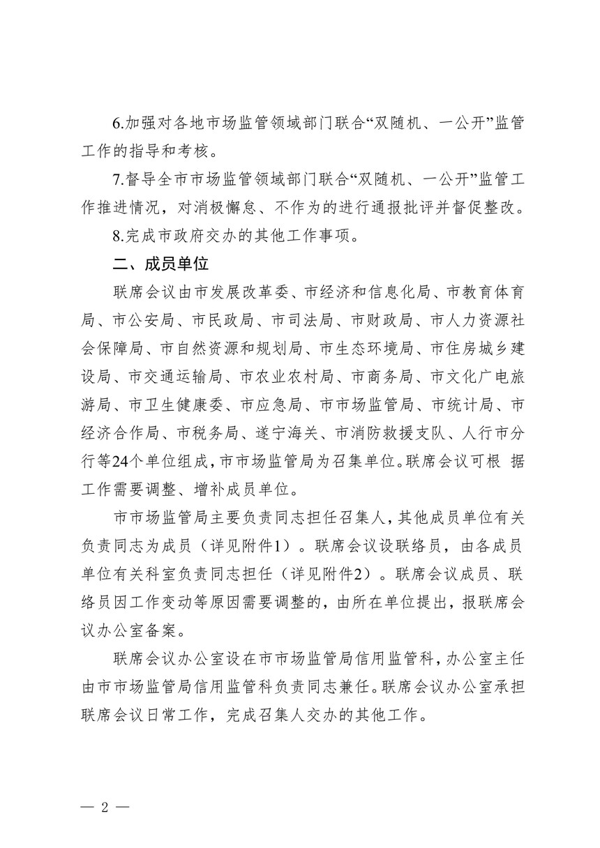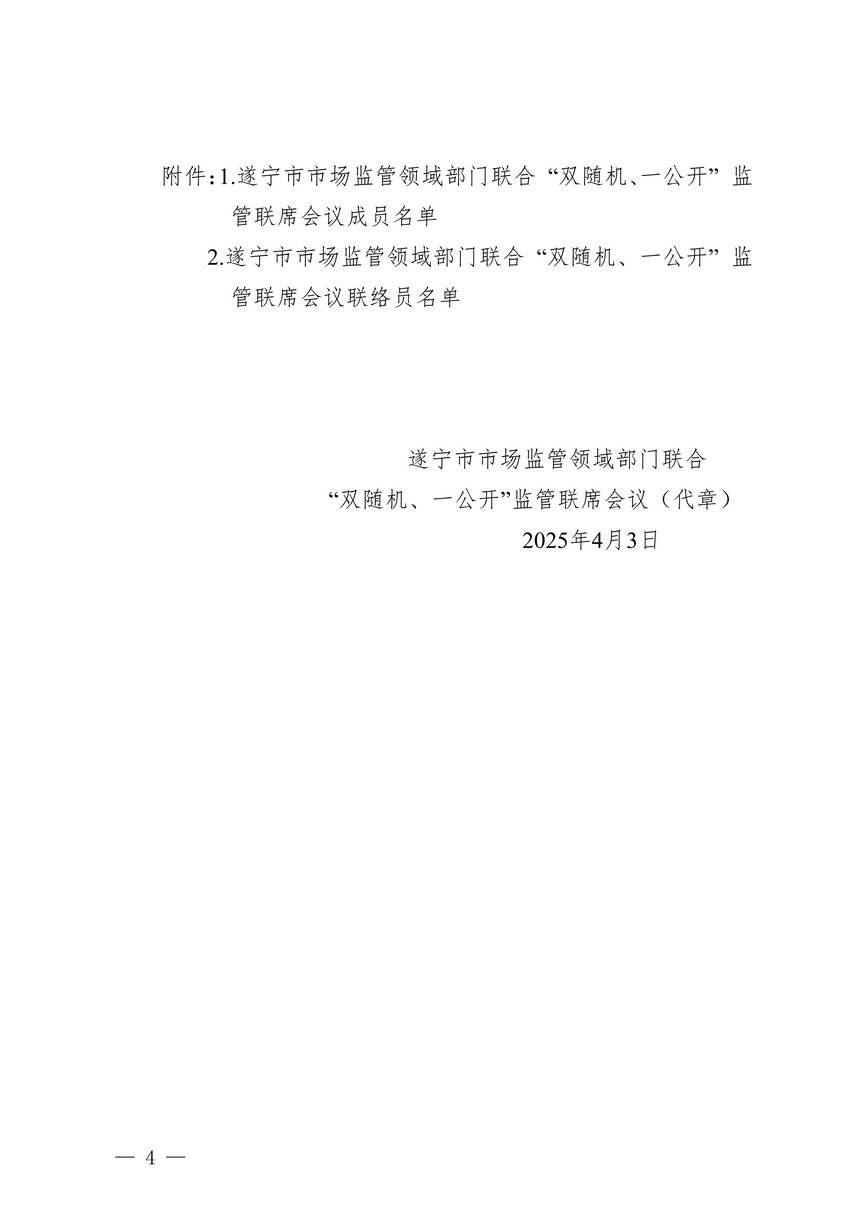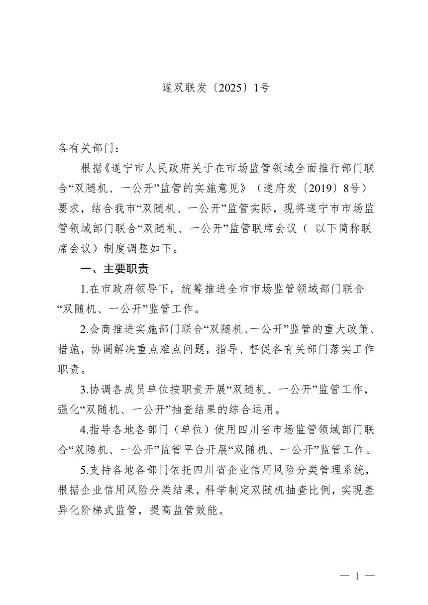 遂宁市市场监管领域部门联合“双随机、一公开”监管联席会议关于调整遂宁市市场监管领域部门联合“双随机、一公开”监管联席会议制度的通知(遂双联发〔2025〕1号)