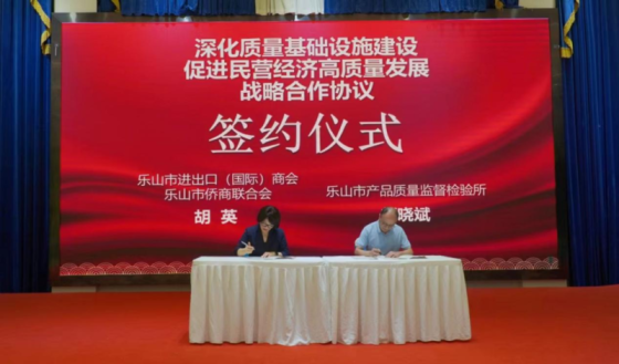 近日,乐山市产品质量监督检验所与乐山市进出口商会、乐山国际商会、乐山市侨商联合会签订《战略合作协议》,多方就质量技术检测、技术合作、知识产权联盟等内容达成战略合作意向,共同倡导产业规范化,标准化发展。近年来,市质检所深入贯彻党的二十大精神,全面落实党中央国务院《质量强国建设纲要》《关于促进民营经济发展壮大的意见》《关于实施促进民营经济发展近期若干举措的通知》等文件要求,聚焦“高质量发展”发展首要任务,以全市唯一综合性检测机构和市质量基础设施“一站式”服务为平台,通过融合计量、标准、认证认可、检验